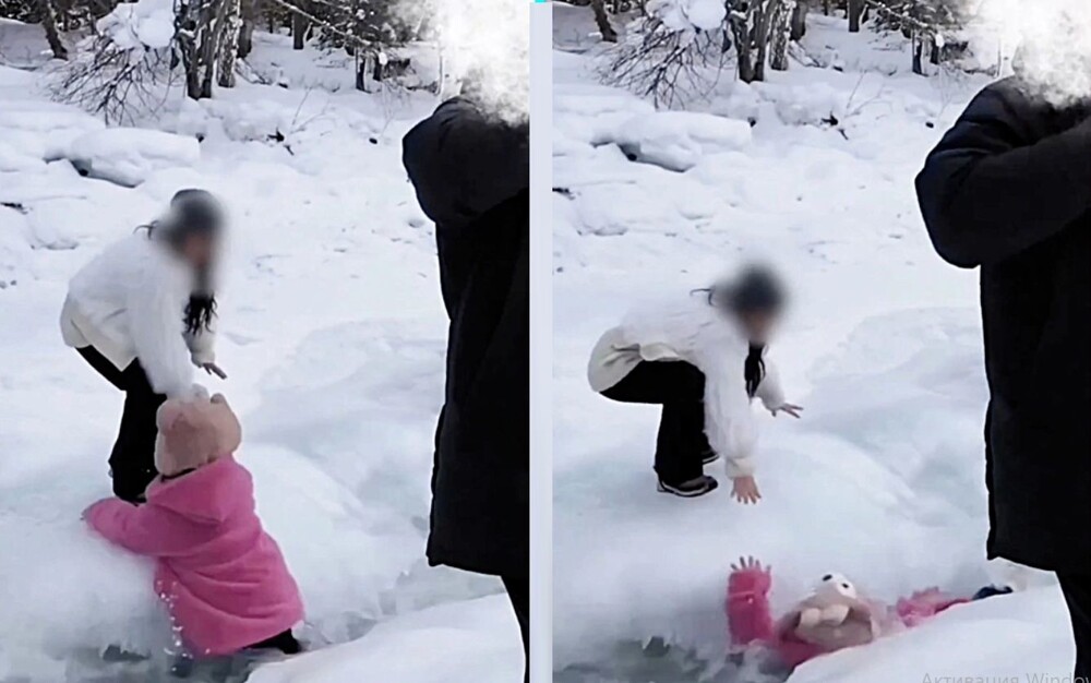В Китае девочка поскользнулась и упала в ледяную реку. Не раздумывая ни секунды, её мать бросилась в воду, чтобы спасти ребёнка из холодного потока. Выбраться на берег им помогли гид и очевидцы, которые подоспели на помощь.