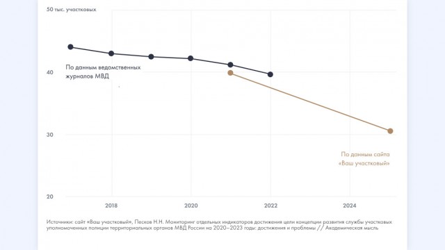 За два года штат участковых в России сократился более чем на 40%, или на 9 тысяч человек. Это 64% от штатной численности. Участковых не хватает почти в каждом регионе — в 14 регионах одному участковому приходится работать за двоих. Такие данные исследования приводит платформа «Если быть точным». Отсутствие необходимого числа участковых может приводить к росту преступлений и более низкой их раскрываемости.