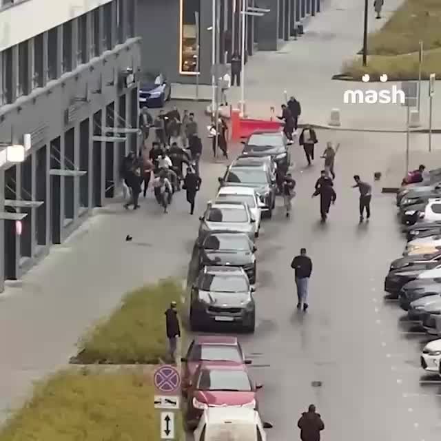 В Москве мигранты устроили массовую драку во дворе ЖК «Прокшино». Больше двадцати человек сошлись в схватке с палками, лопатами и даже дорожными знаками. Очевидцы снимали побоище с балконов и писали в чаты, что участники выбивали окна на первых этажах и били машины. Некоторым жителям пришлось уворачиваться от летящих предметов.