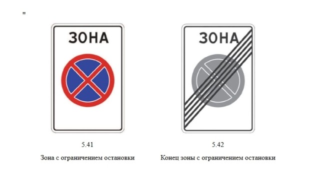 С 1 января 2026 года в ГОСТ появится новый знак, обозначающий начало зоны, в которой запрещена остановка: Основное отличие прямоугольных зональных знаков от обычных круглых состоит в том, что они действуют не до ближайшего перекрестка, а до момента установки знака, обозначающего конец зоны.