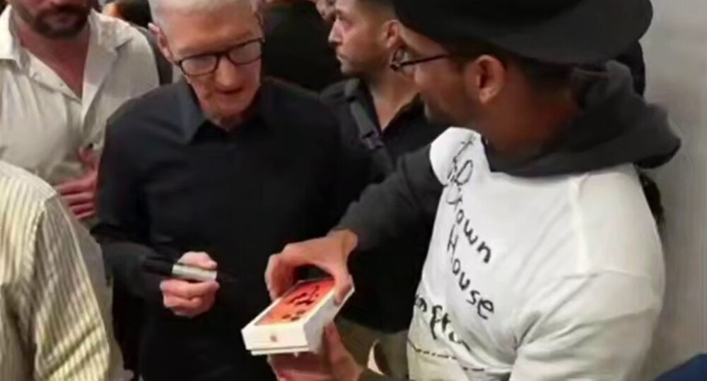Парень попросил генерального директора компании Apple Тима Кука расписаться на новом айфоне. В момент открытия коробки смартфон случайно выпал.