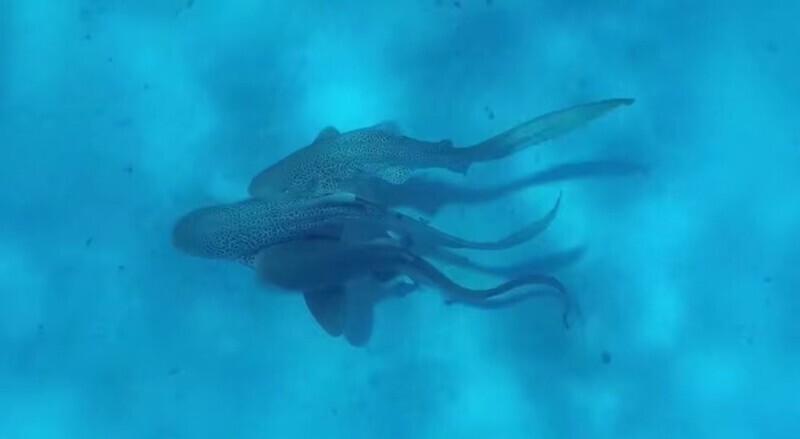 Учёные впервые засняли групповой секс трёх акул. В Новой Каледонии зафиксировано спаривание двух самцов и одной самки леопардовых акул.