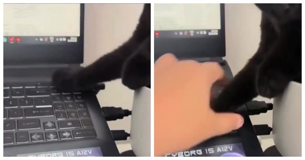 Черный кот максимально ненавязчиво привлекает к себе внимание хозяина.