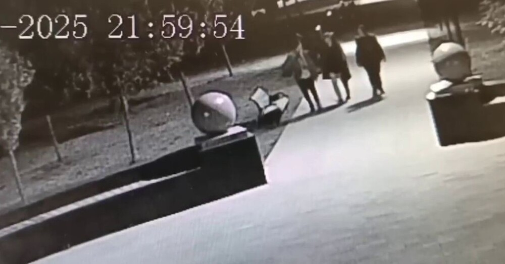 Компании молодых людей чем-то помешал гранитный шар в парке в городе Долгопрудный. Совместными усилиями они столкнули шар с постамента и ушли.