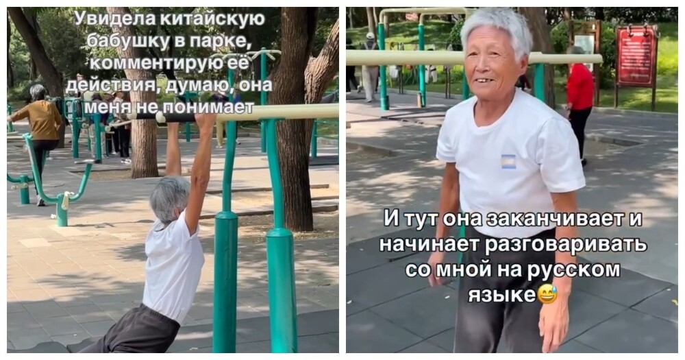 Девушка гуляла по парку и заметила 80-летнюю бабушку, занимающуюся на брусьях. И была поражена, что в свои годы она такая гибкая.