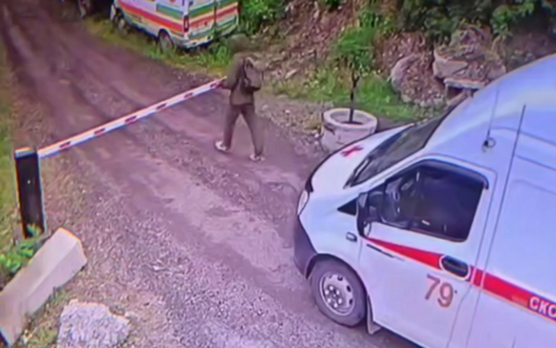 В одном из подмосковных дворов мужчина сломал шлагбаум, чтобы автомобиль скорой помощи смог проехать к месту вызова.