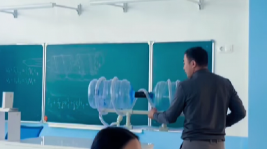 35-летний учитель физики собрал "бластерную пушку" из бутылей для кулера и трубок. Простая, но эффектная конструкция показала принцип работы волнового движения воздуха.