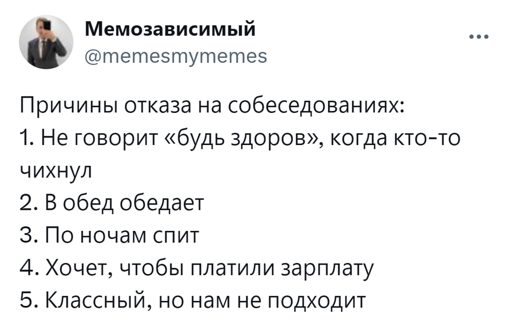 Тельцов не берём, вы болеете не за ту команду, вы слишком интересно рассказываете о прошлой работе, вам у нас будет скучно - эти и другие причина отказа в работе в нашем грустном посте.