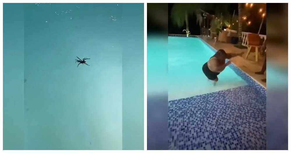 Эти тропические пауки значительно крупнее привычных французских, и, как выясняется, способны передвигаться по поверхности воды благодаря её натяжению. Хотя реальной угрозы нет, страх берёт верх.