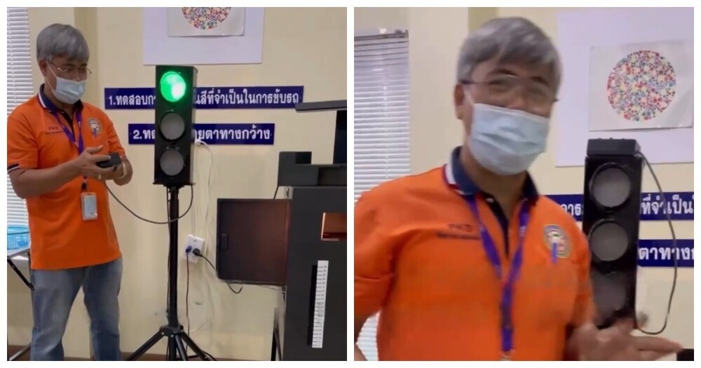 Россиянин показал, как проходит экзамен в кабинете: экзаменатор включает цвета светофора, а кандидат называет их. Если ответил правильно, права твои. Никаких знаков, разметки или сложных правил, только светофор и внимательность.
