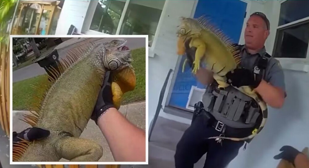 Зелёный монстр разгуливал по дворам, пока не застрял в заборе — в этот момент копы его и схватили за хвост.