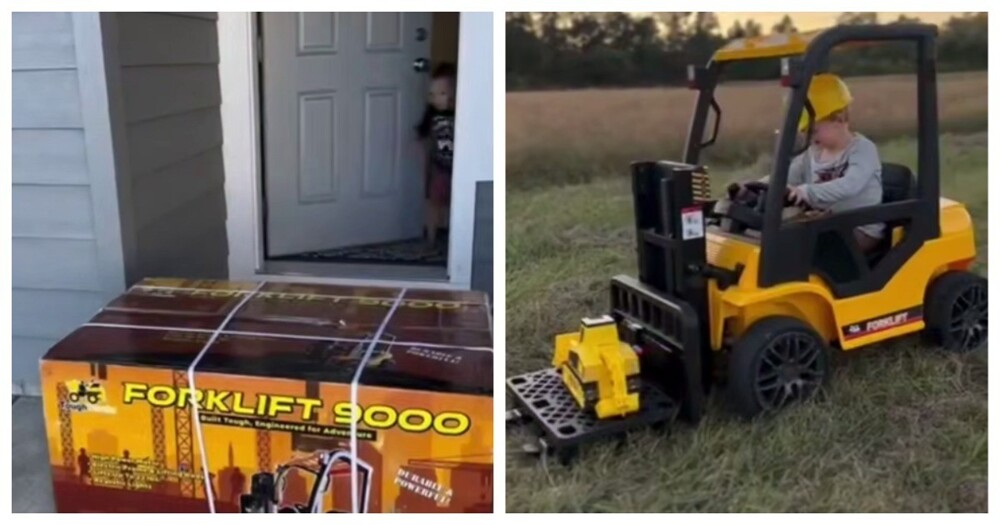 В США мужчина подарил сыну детский вилочный погрузчик. Ребенок был в восторге!