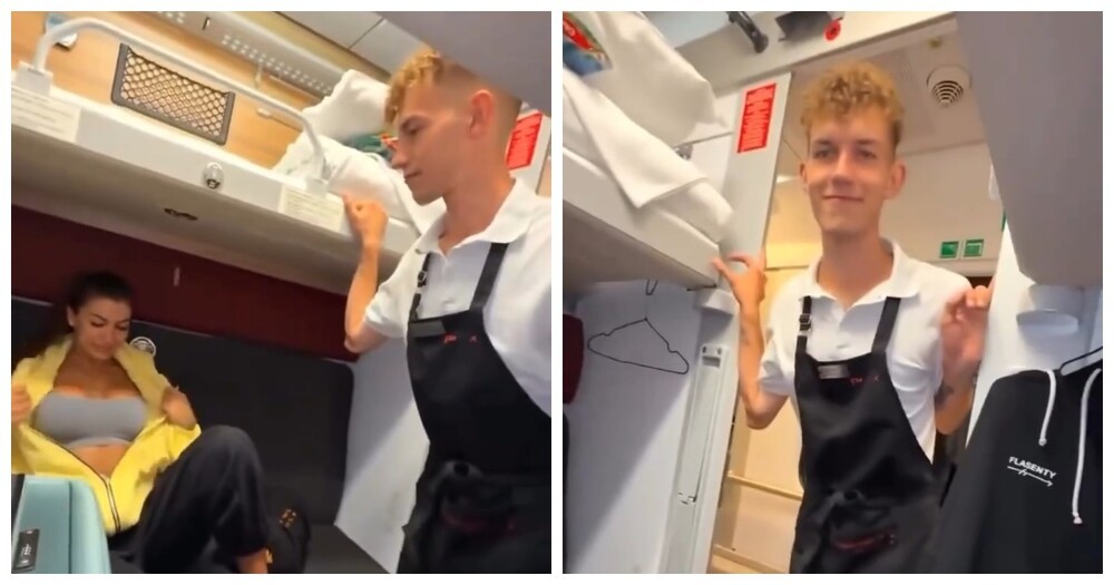 Девушки «склеили» в поезде молодого проводника во время своей поездки и выложили его «приключения в сеть».