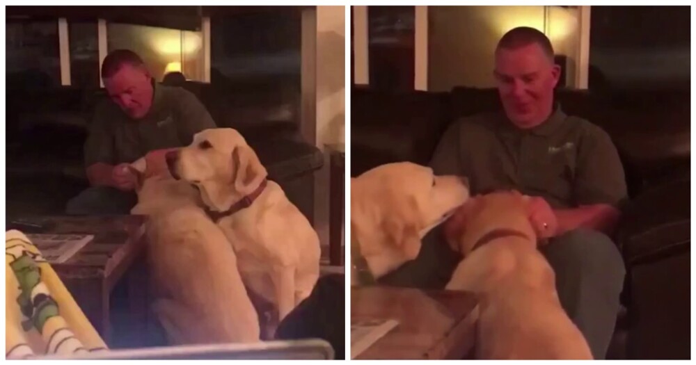 Хозяин псов регулярно закапывал лекарство одному из питомцев. Второй четвероногий друг чувствовал себя обделённым и ревновал. В какой-то момент мужчина начал делать вид, что лечит и другого пса.