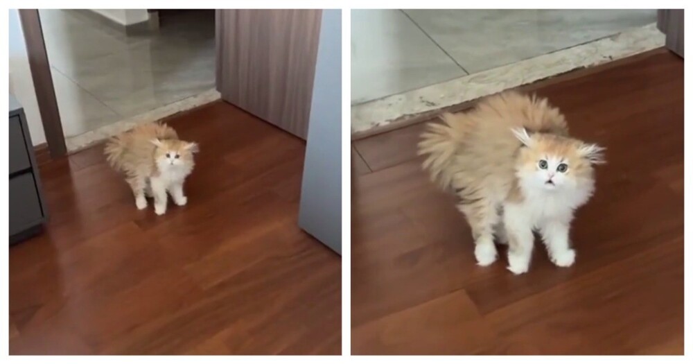 Кошка ненадолго впала в ступор, когда увидела свою хозяйку с новой прической. Питомец окончательно убедился в том, что перед ним хозяйка только когда женщина заговорила.