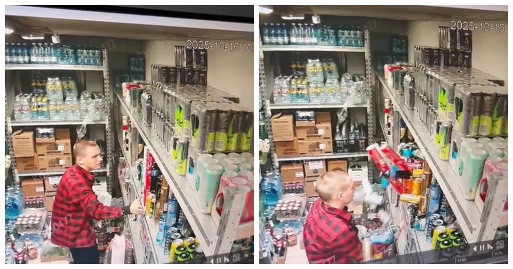 Работник магазина пытался разместить как можно больше товара на полке, но жестяные банки решили иначе.