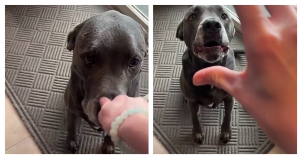В сети набирает популярность ролик с недовольным псом. Питомец злится, когда хозяйка «ворует» у него нос.