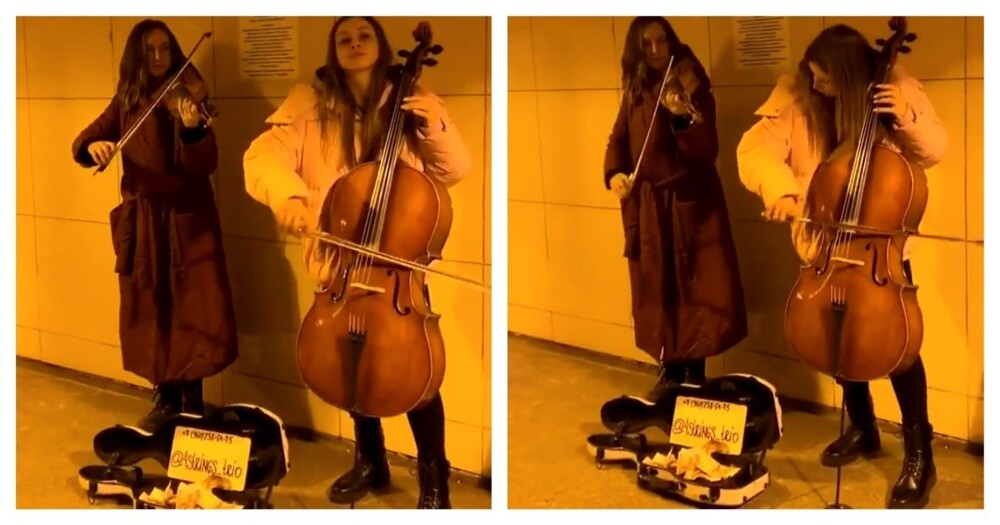 Девушки радуют своей игрой прохожих в переходе на станции метро Невский проспект в Санкт-Петербурге.