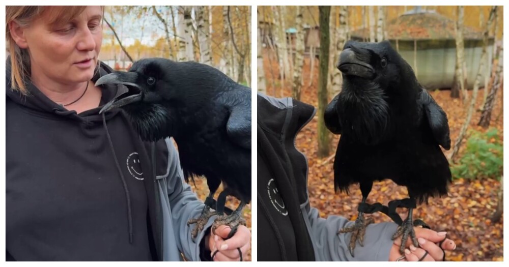Вороны входят в число самых умных птиц в мире. Пернатый по кличке Карлуша болтает на разные темы и даже смеётся по-человечески.
