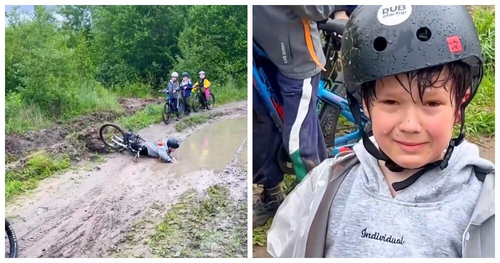 Мальчик упал в лужу и сразу попросил еду, но даже в такой момент нашёл силы улыбнуться для мамы!