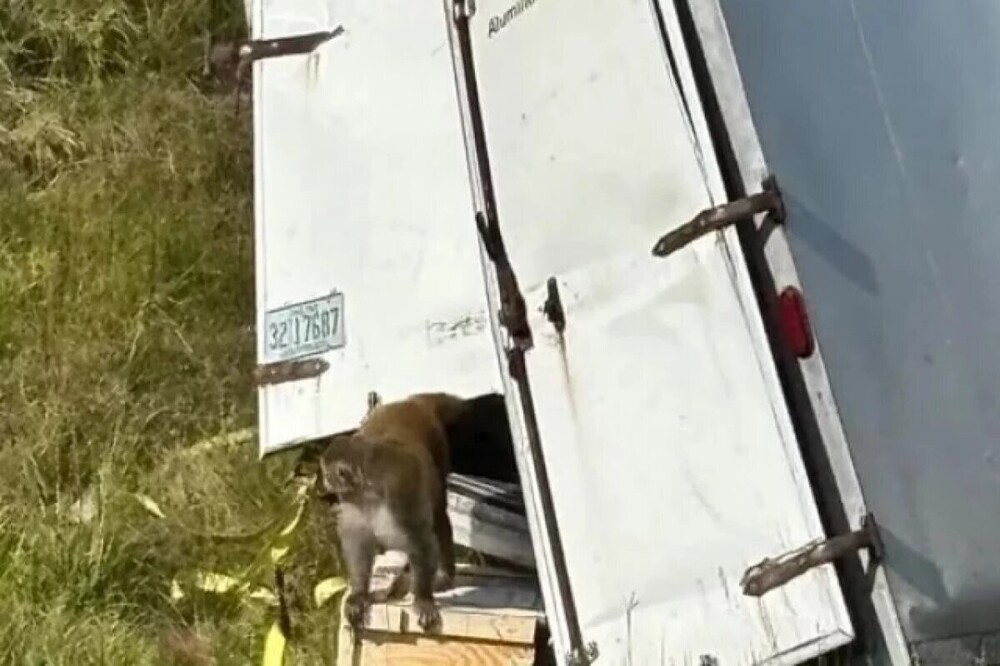 Лабораторных животных перевозили на грузовике, который попал в аварию.