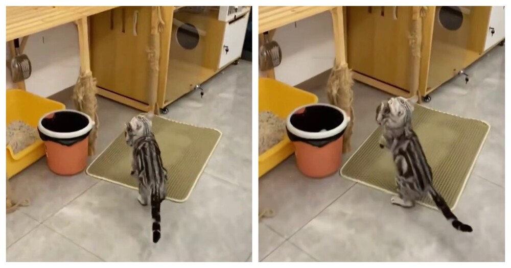 Неопытная мамаша немного не рассчитала, когда пыталась запрыгнуть на стол вместе с котёнком.