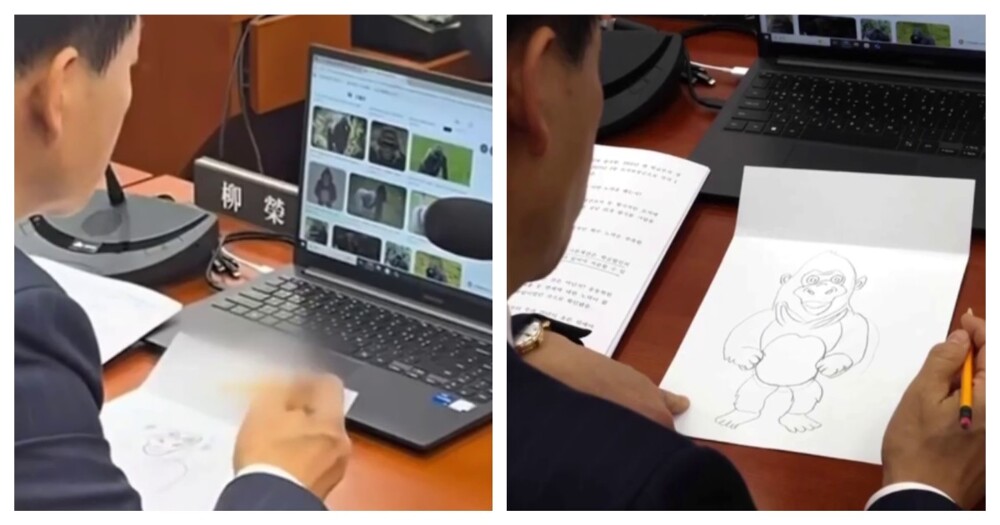 В Южной Корее депутата поймали за рисованием гориллы. Мужчина старательно срисовывал примата с образца в интернете во время заседания, посвященного аудиту в сфере недвижимости.