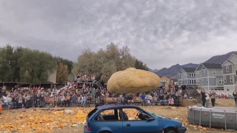 Фермер вырастил тыкву весом около 860 кг и использовал её, чтобы эффектно попрощаться с тачкой, на которой проработал 35 лет.