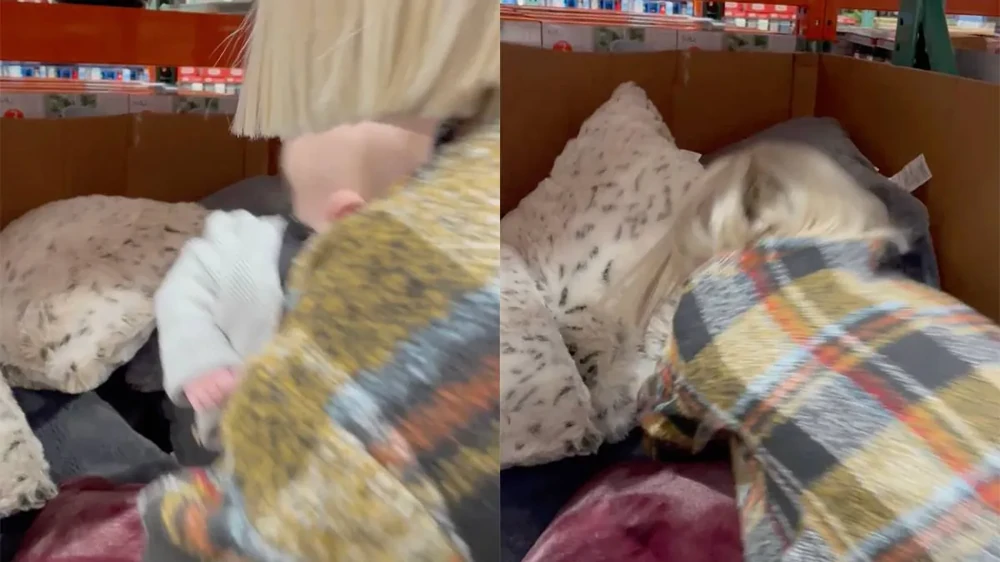 Мама хотела посадить ребёнка на стопку подушек, чтобы сделать красивое фото, но малыш неожиданно провалился внутрь. К счастью, родители быстро вытащили его, и ситуация завершилась смехом и забавной историей для семьи.