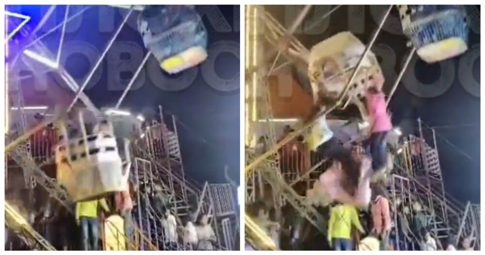 В Индии произошёл тревожный инцидент в парке развлечений. Кабинка с детьми перевернулась во время движения колеса обозрения. Находившиеся внутри несовершеннолетние упали на землю.