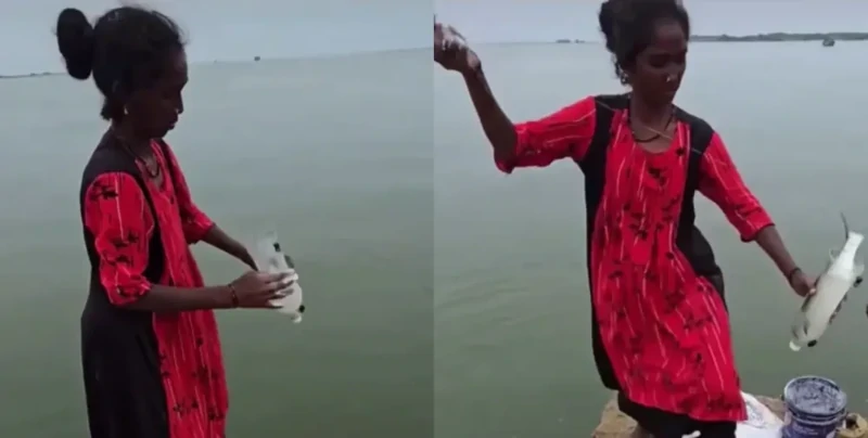 Жительница Индии пришла на пирс, чтобы поймать рыбы на обед с помощью странного приспособления. Впоследствии когда женщина показала свой улов, в сети были в восторге от увиденного результата.