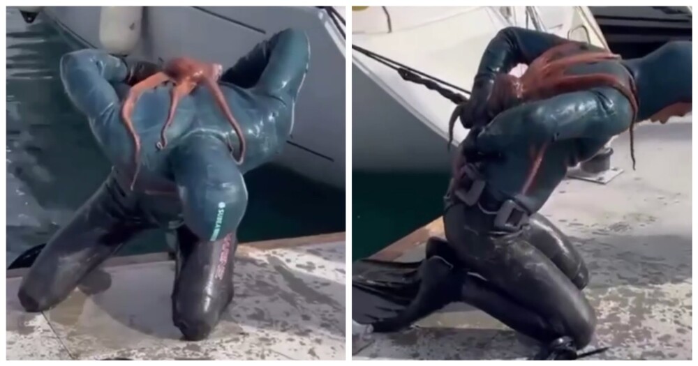 Осьминог совершил дерзкое нападение на дайвера средь бела дня. Морской житель вцепился в мужчину, когда тот чистил днище яхты.