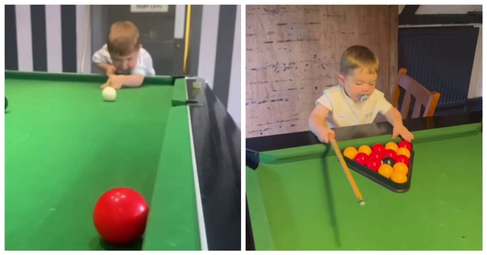 Мальчик из Манчестера по имени Джуд очень любит бильярд. Отец снимает, как он уверенно загоняет шары в лузы.
