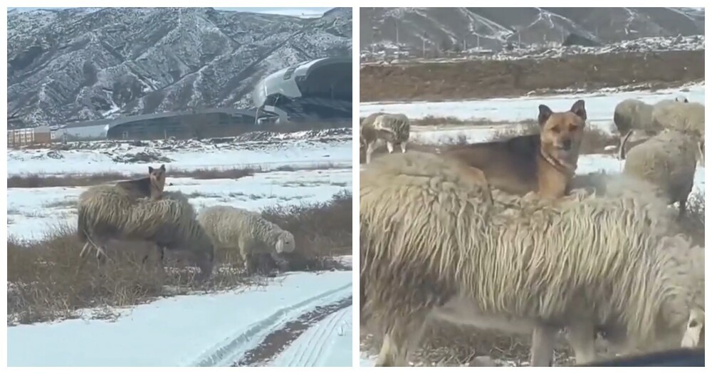 Бдительная, но ленивая собака-пастух стала звездой соцсетей: она нашла идеальный способ наблюдать за стадом — просто залезла на спину овцы и удобно расположилась, контролируя процесс сверху.