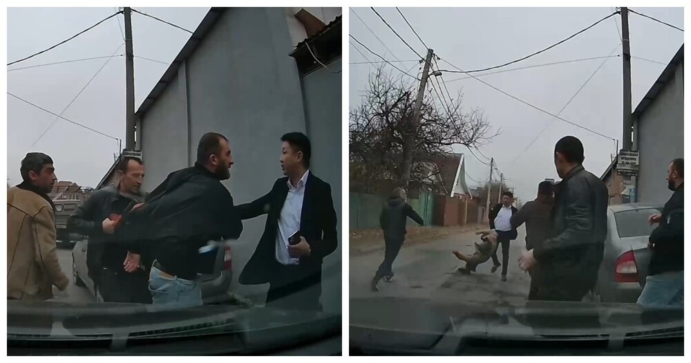 На видео видно, как мужчина в костюме противостоит нескольким нападающим на рынке. Он успел нанести удары двоим нападавшим, которые упали, а затем покинул место конфликта, избегая дальнейшей драки.