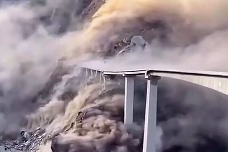 В китайской провинции Сычуань из-за оползня частично рухнул автомобильный мост. Кадры с моментом обрушения появились в сети.