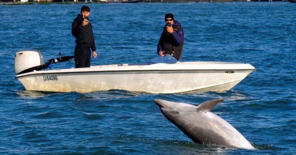 Туристы и местные жители Венеции стали свидетелями редкого зрелища. Дельфин, получивший прозвище Миммо, облюбовал воды у площади Сан-Марко. Последний раз морских млекопитающих видели здесь в 2021 году, когда из-за пандемии COVID-19 снизилась активность судоходства.