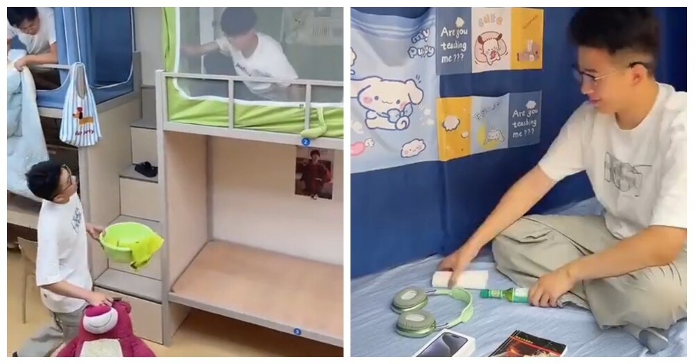 На видео студент из Китая делится, как он организовал своё спальное место в общежитии: компактно, удобно и с личным стилем.