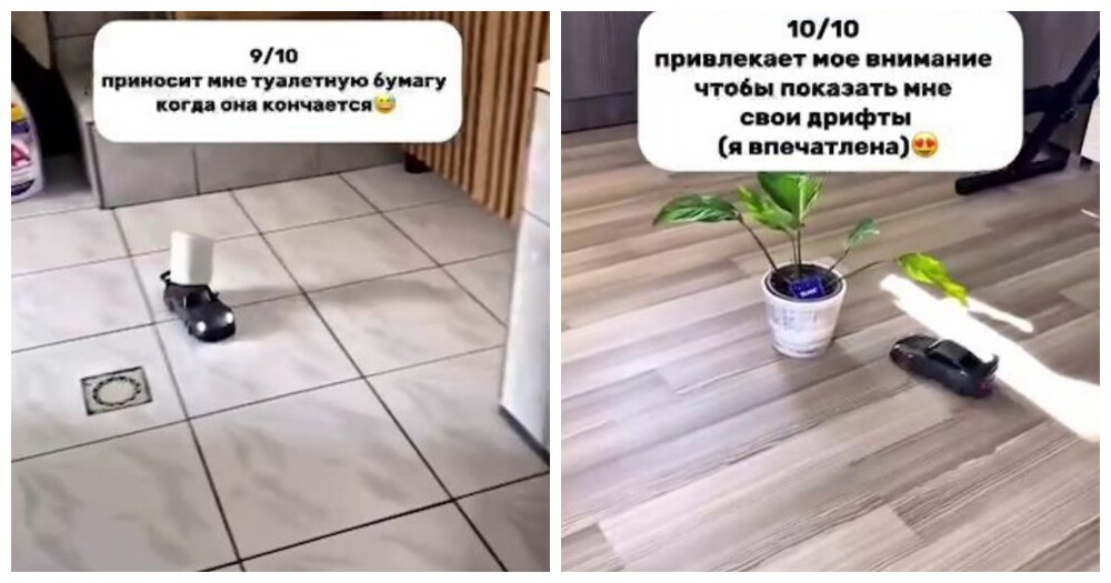 Парень получил в подарок радиоуправляемый Porsche и сразу нашёл ему необычное применение: с помощью мини-автомобиля он доставляет девушке мелочи, флиртует и развлекает.