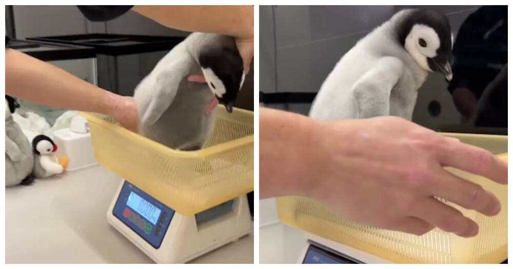 Работники океанариума аккуратно удерживают маленького пингвина, чтобы взвесить его, а потом угощают вкусной едой. Такое видео невозможно смотреть без умиления — невероятно милый процесс заботы о животном.