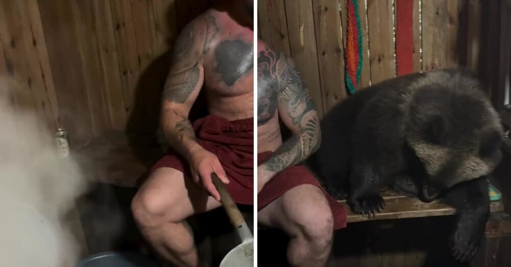 У этих ребят на севере тепло не только от баньки — рядом всегда верный друг, пусть и косолапый. Забавная и уютная сценка о дружбе людей и их приручённого медведя.