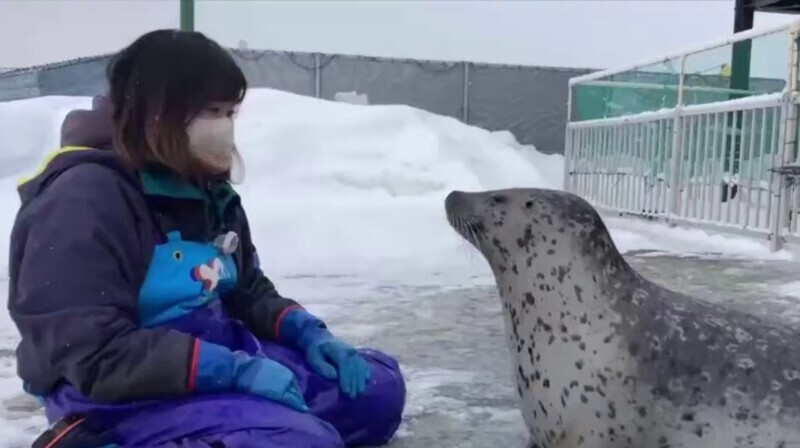 В сети набирает популярность забавное видео, снятое в японском зоопарке. Пользователей сети очаровал тюлень, который синхронизировался с сотрудницей.