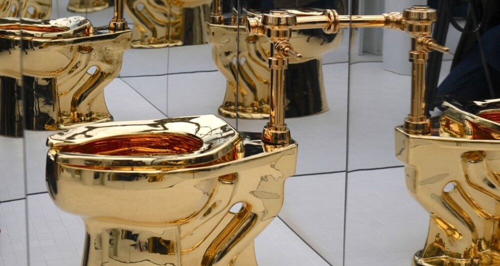 Золотой унитаз «Америка» из 18-каратного золота продали на аукционе в США более чем за 12 миллионов долларов (более 980 миллионов рублей). Унитаз был создан итальянским художником Маурицио Каттеланом — автором того самого , который сначала был , а потом несколько раз съеден.