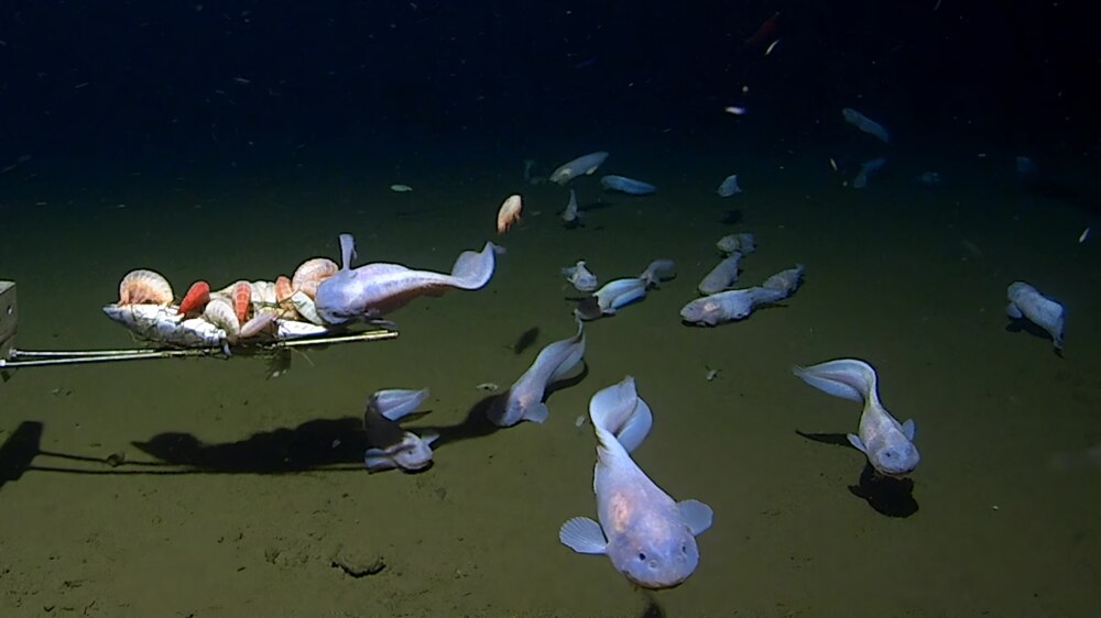 Рыбы семейства липаровых (Pseudoliparis), которых еще иногда называют морскими слизнями, обитают на рекордных глубинах свыше 7-8 километров. Они едят мелких ракообразных и падаль.