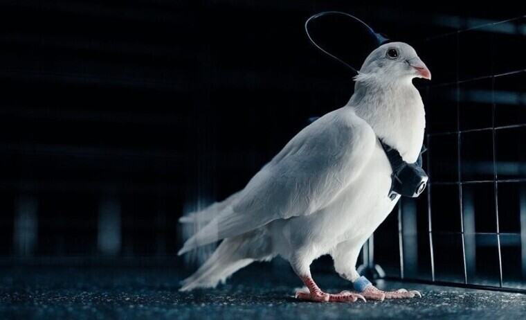 Как утверждают представители биотех-лаборатории, полётом голубя можно управлять дистанционно через имплантированные в мозг птицы электроды.