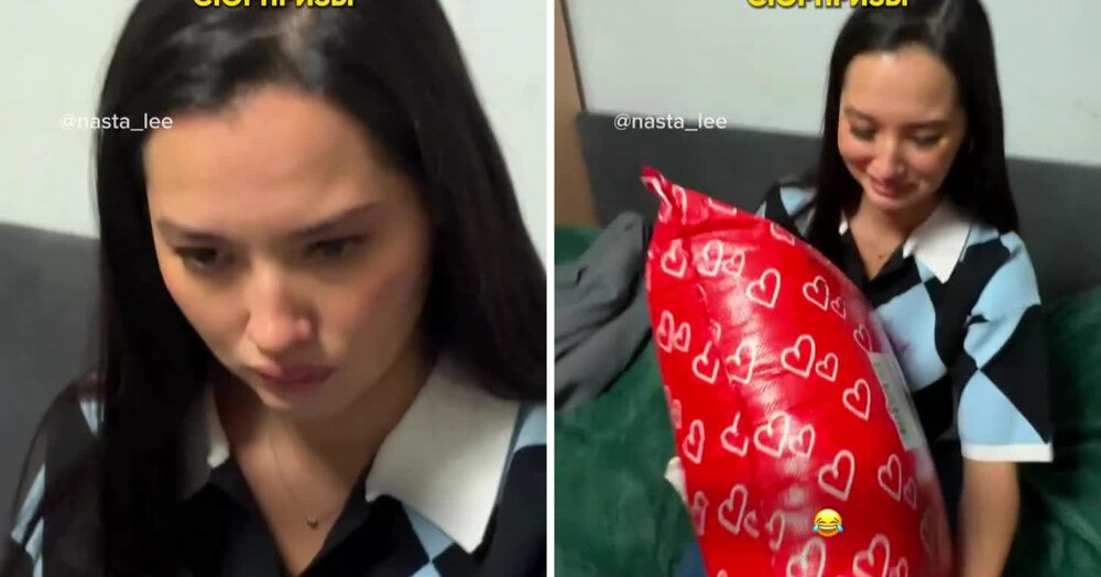 Необычный аксессуар одновременно и забавный, и уютный, а реакция девушки на сюрприз говорит сама за себя.