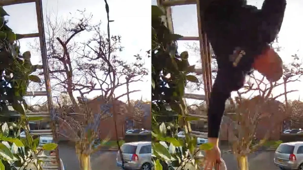 Мужчина решил повесить рождественские гирлянды, но запутался в проводах и упал с лестницы.