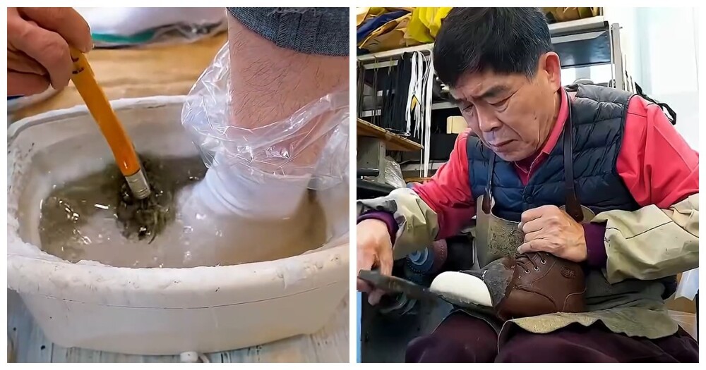 На видео показан весь процесс изготовления персональных ботинок в Китае — от снятия слепка с ноги до готовой пары обуви.
