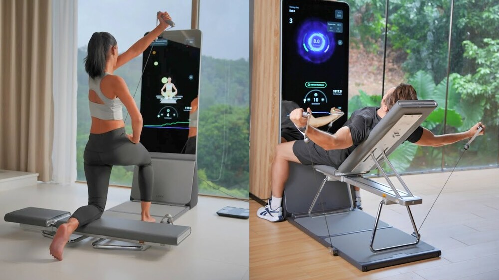 Как выглядит домашний спортзал с интеграцией ИИ и сенсорным 4K-дисплеем. Он занимает мало места и в собранном виде выглядит как обычное зеркало.