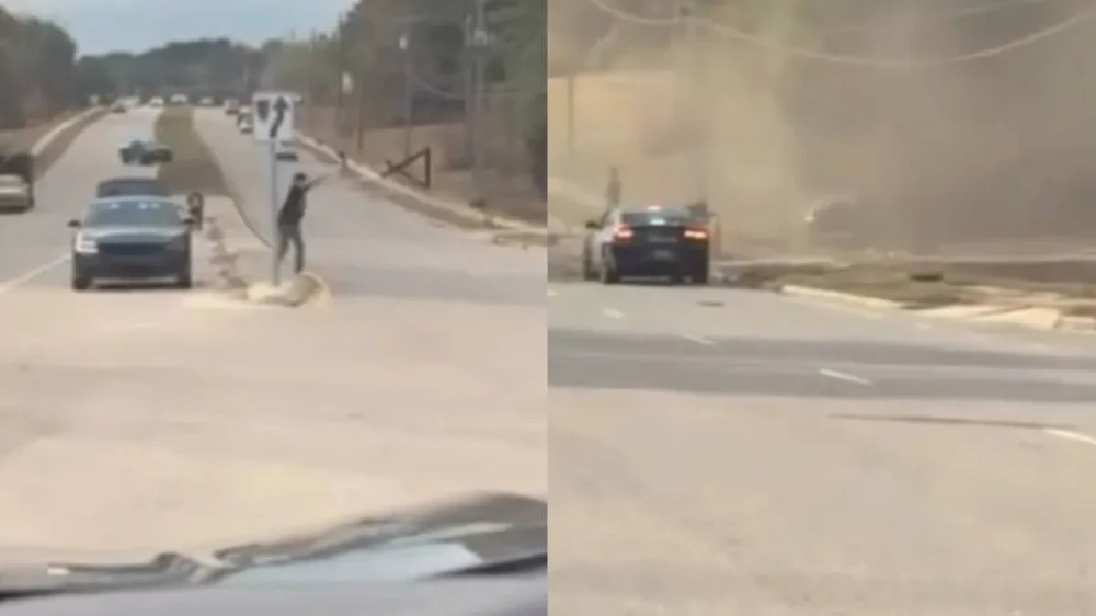 Во время полицейской погони автомобиль наехал на шипы, установленные для остановки, и после этого отбросило в столб с проводами.